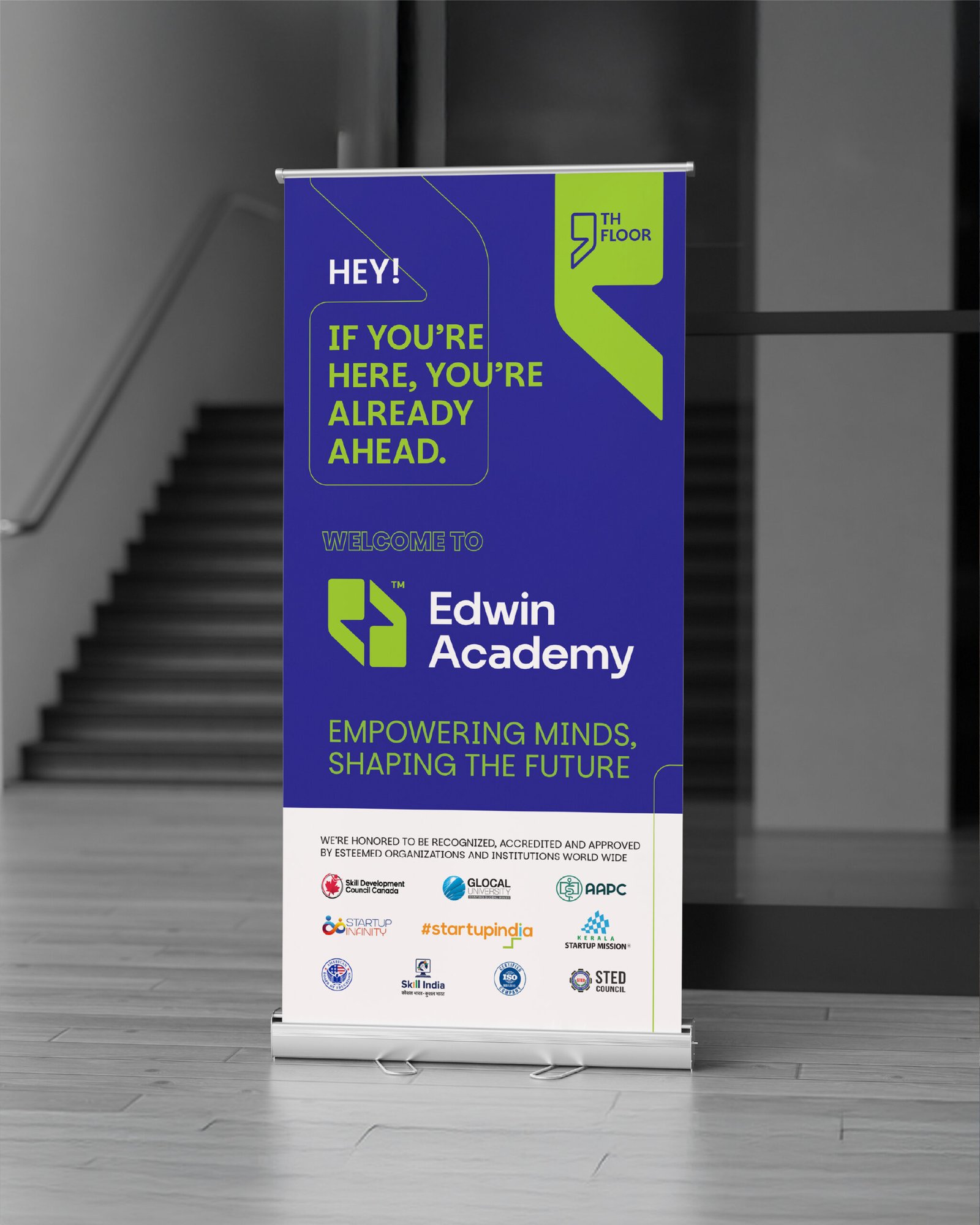 For the campuses, we introduced motivational wall graphics, signage, and glass partition designs — transforming blank walls into daily reminders of ambition. On the digital front, we created branded templates for announcements, recruiter tie-ups, and placement highlights. This gave Edwin’s social media a professional yet youthful energy.